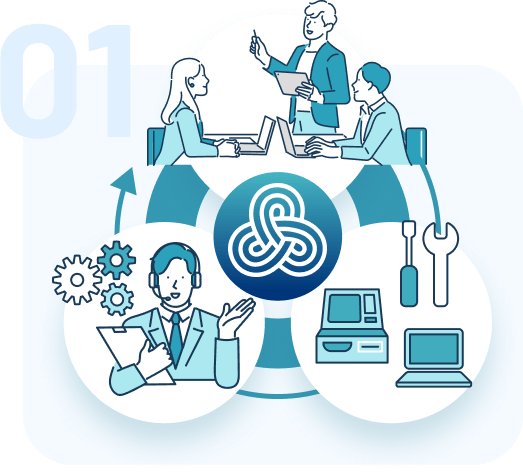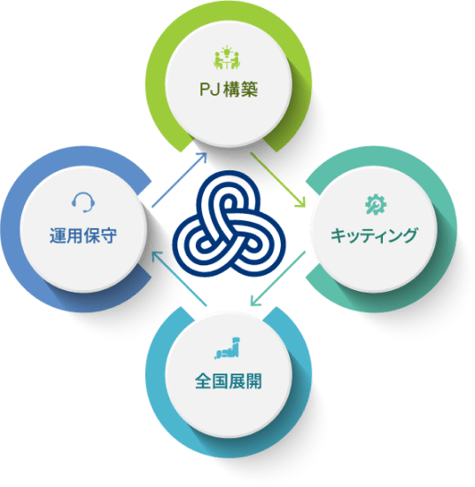 プロジェクト統制~キッティング~現地導入展開、導入後の保守運用までをワンストップで請け負い、縦横無尽且つフレキシブルに対応することで、コスト最適化と安定品質をご提供いたします。