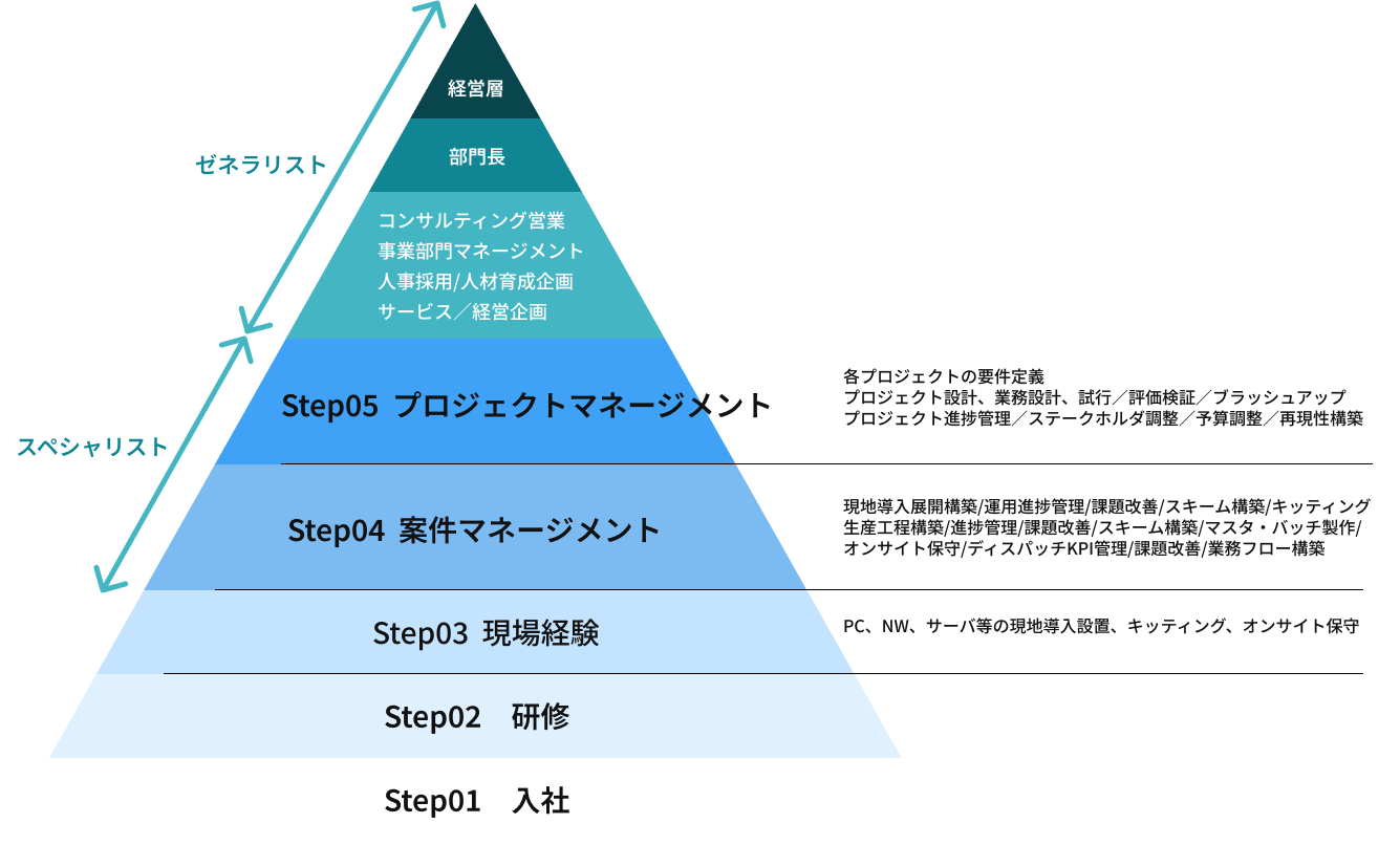 また、本人の希望や、適性やリーダーシップに応じて、ゼネラリストに登用し、企業全体の成長を支える役割も担うとこができます。